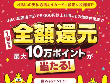 9.1(月)~10.31(金)🔸d払い🔸全額還元!最大10万ポイントが当たるキャンペーン