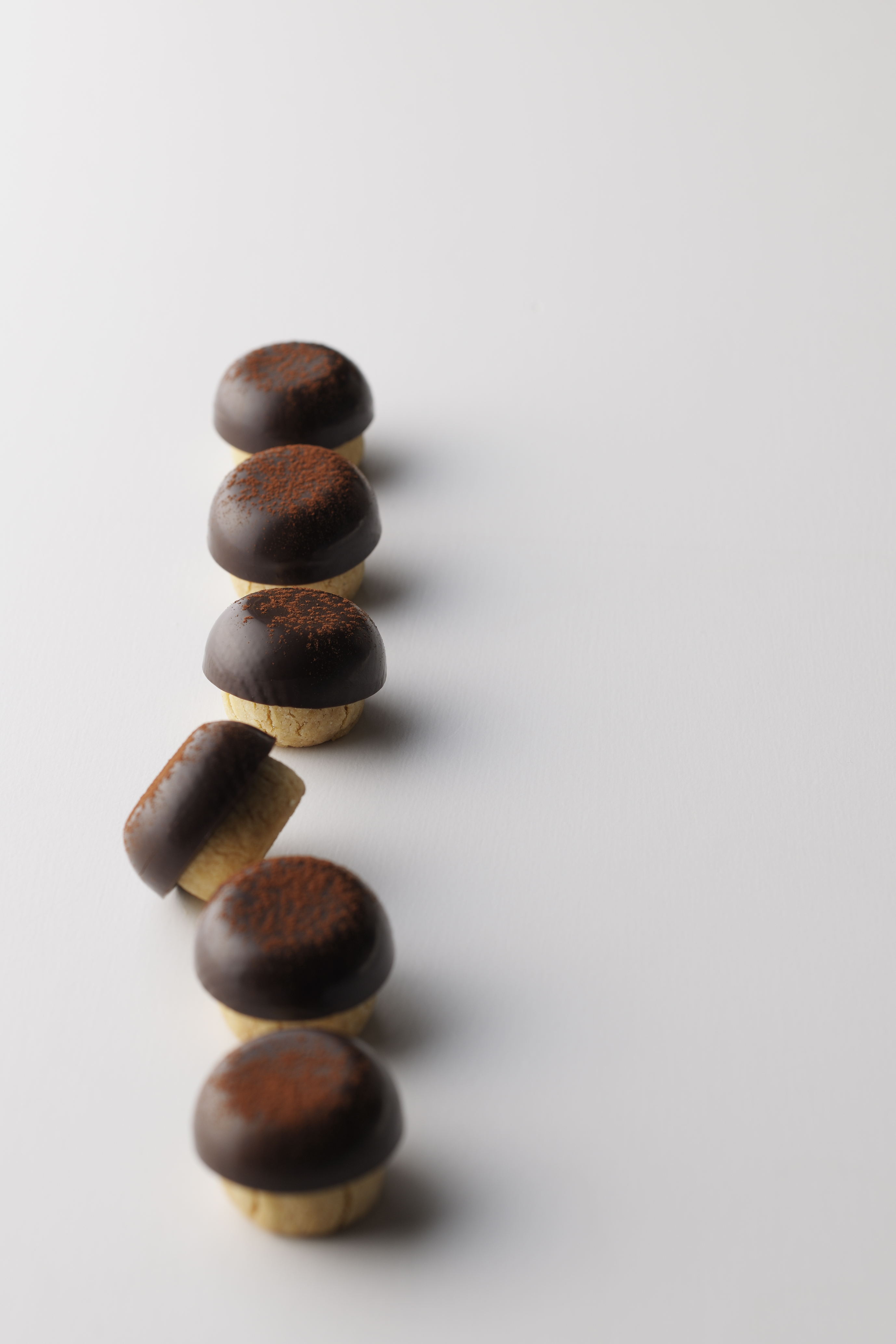 今年のバレンタイン限定の、かわいいキノコ型チョコレートはサクサククッキーとの絶妙な組み合わせ。