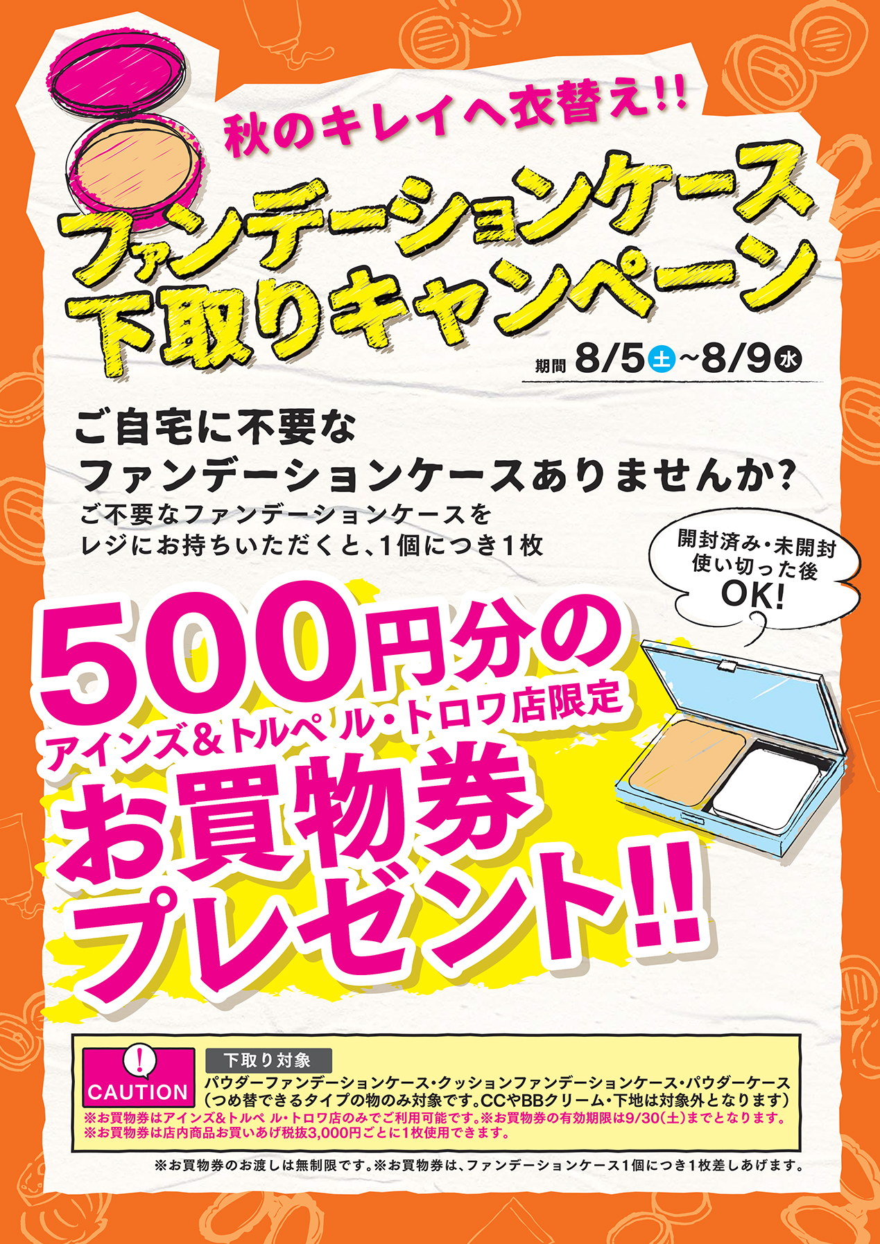 8.5(土)〜8.9(水)まで ファンデーション下取りキャンペーン