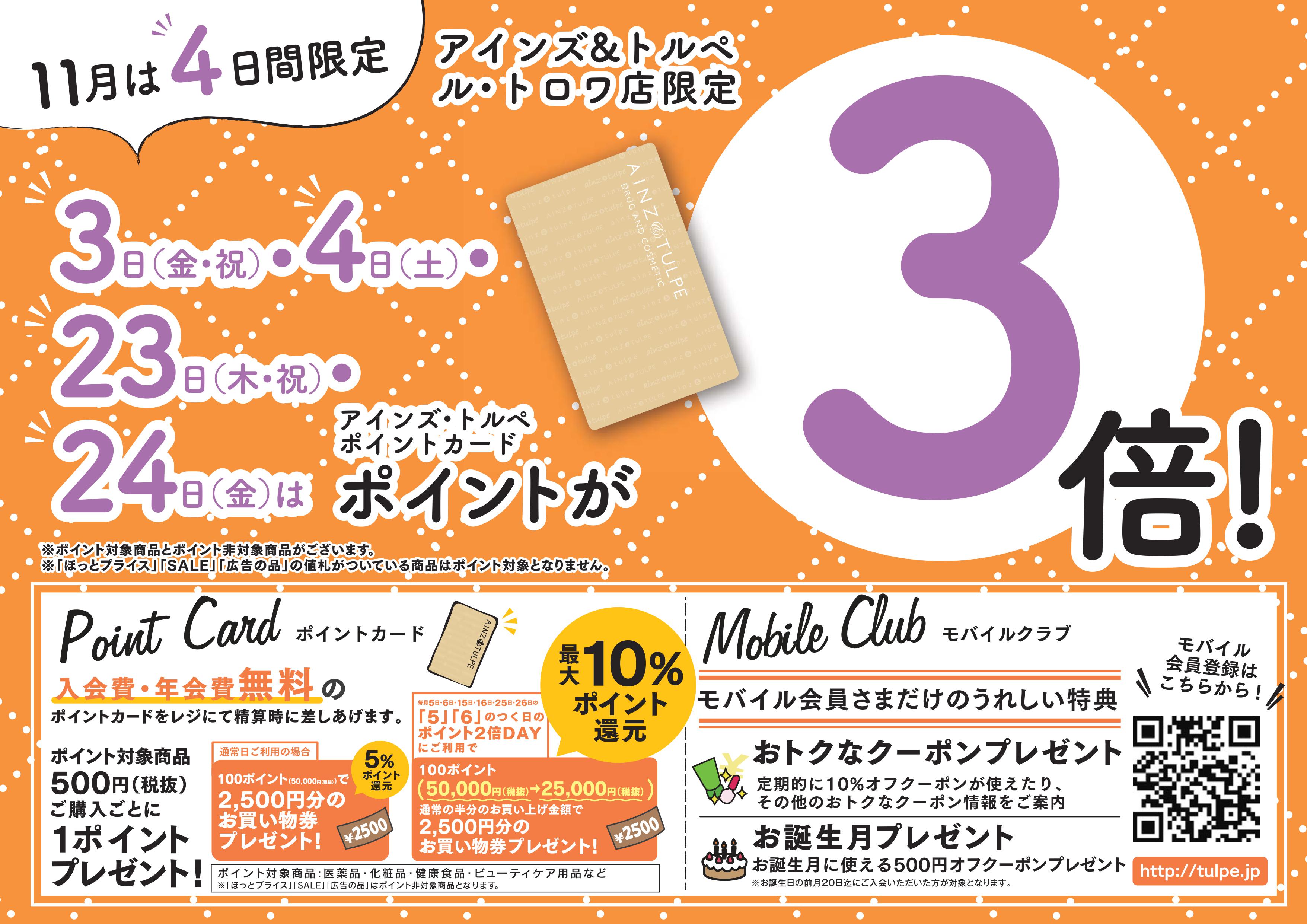 アインズ&トルペ ル・トロワ店限定! ポイントカードPOINT3倍!