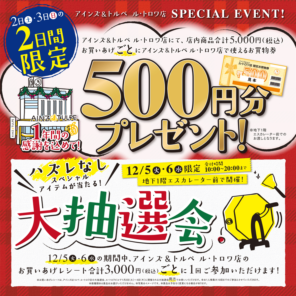 ◇アインズ&トルペ ル・トロワ店限定 大抽選会◇