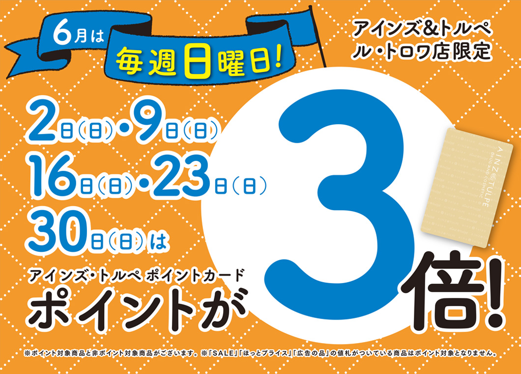 6月は毎週日曜日がアインズ&トルペポイントカードPOINT3倍!