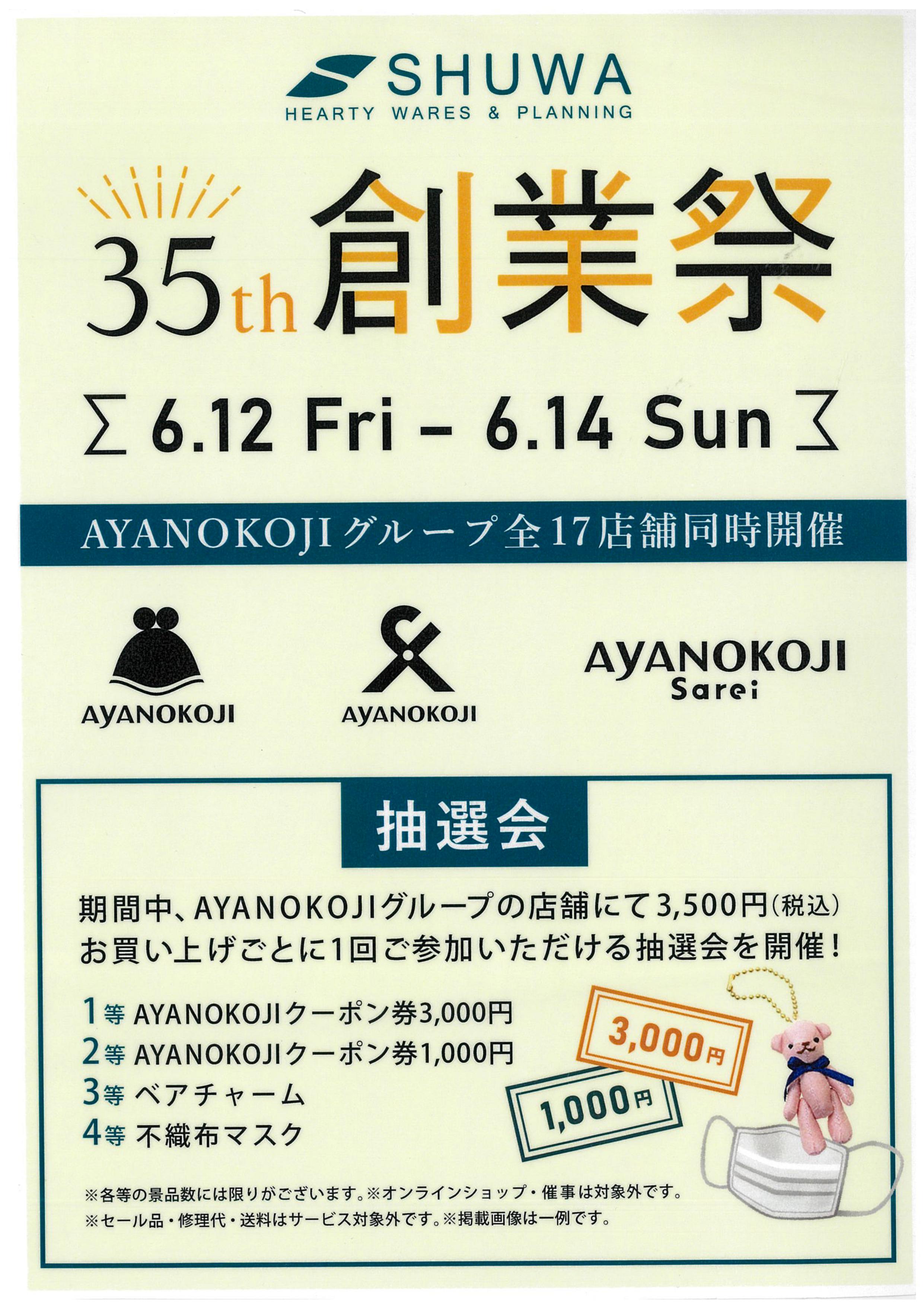 AYANOKOJIでは、日頃のご愛顧に感謝して、創業祭を開催いたします!