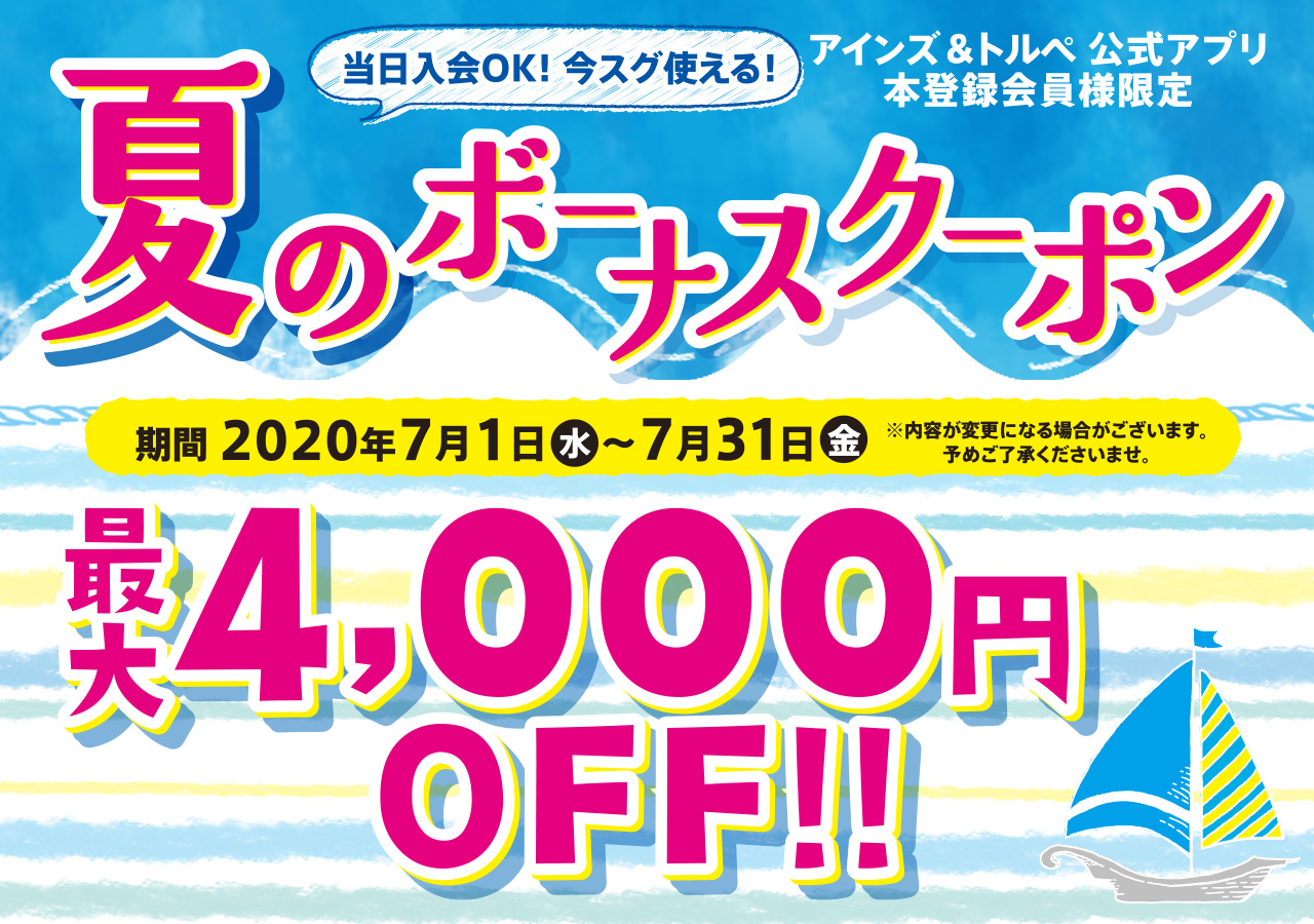 最大4,000円OFF!夏のボーナスクーポンプレゼント!