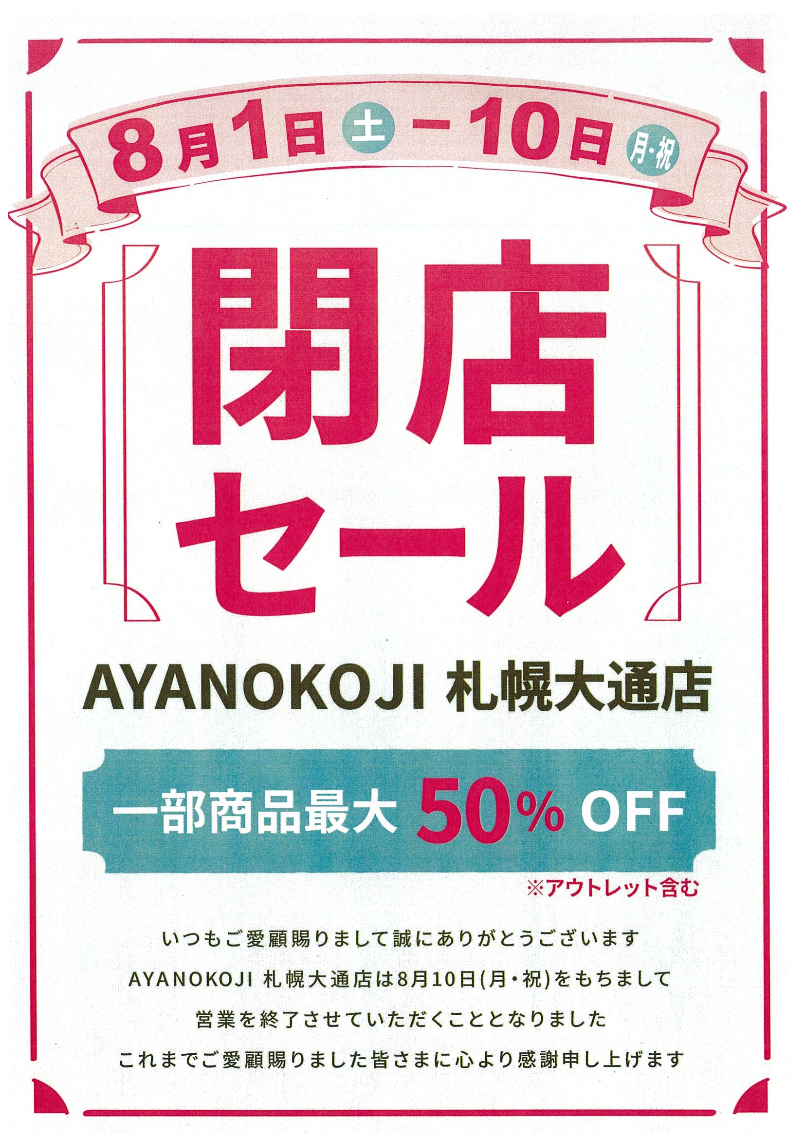 誠に勝手ながら、8月10日(月)をもちまして閉店させていただきます。