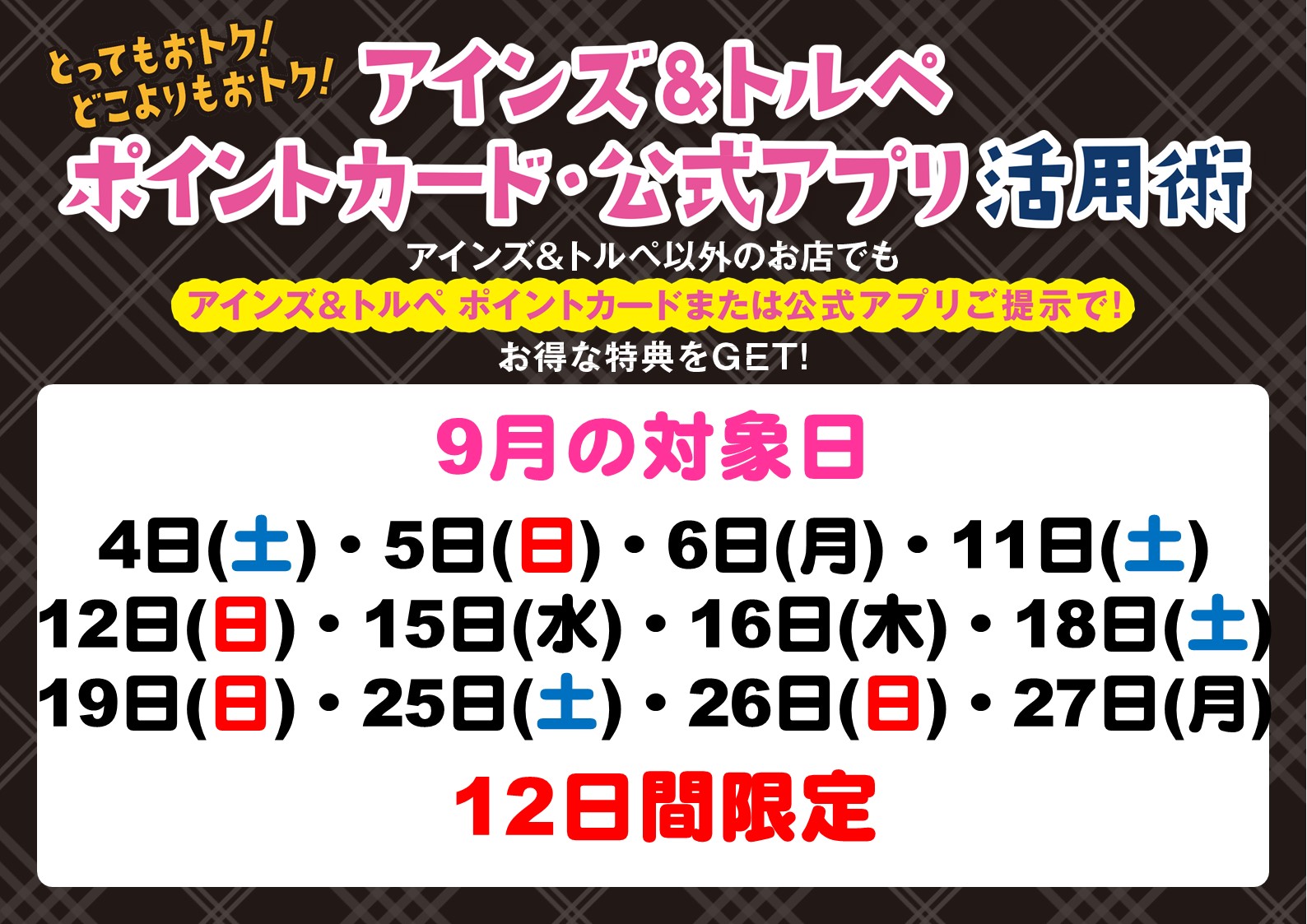 アインズ&トルペポイントカードまたは公式アプリをご提示で