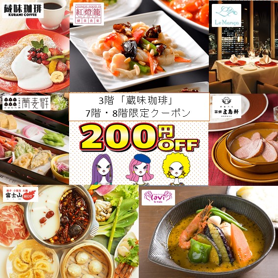 3階「蔵味珈琲」・7階・8階の飲食店限定で使える200円OFFのLINEクーポンをプレゼント!