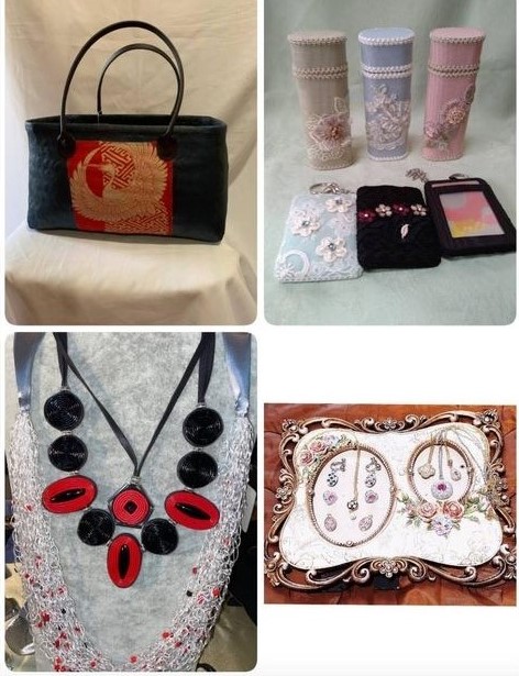 川の生地に天然石を組み合わせて作るアクセサリー。