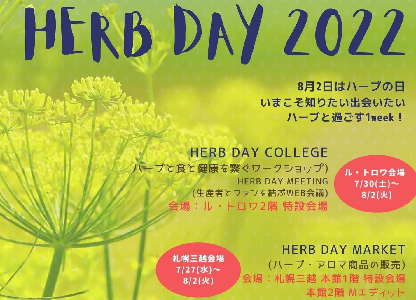 □特典:ワークショップ・試食会にご参加の方には、会期中に札幌三越にて開催の「HERB DAY MARKET」で受け取れるプレゼント引換券を差し上げます(先着200名様まで)