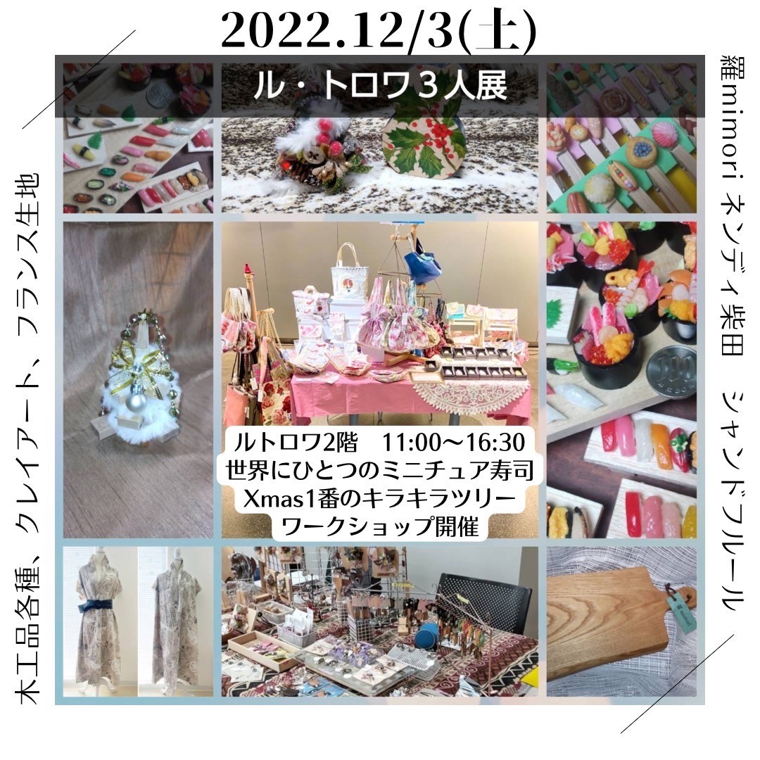 3人のハンドメイド作家によるXmas向けの楽しいワークショップ&販売です!