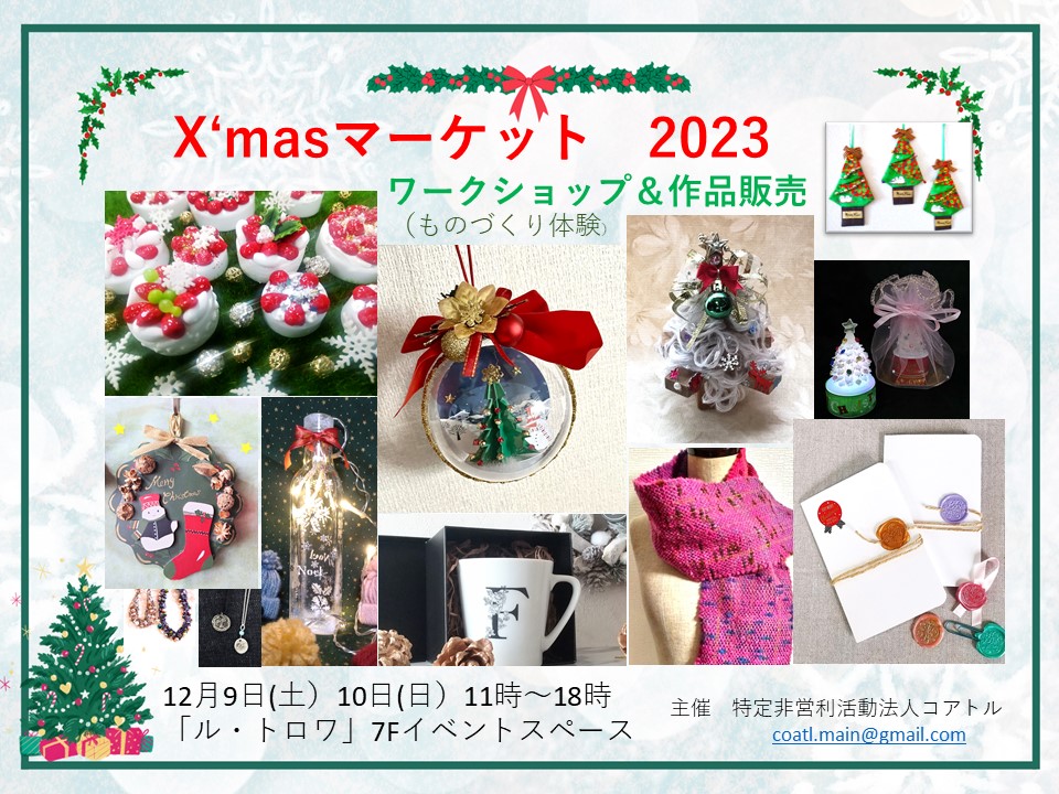 クリスマス小物の販売も有り。