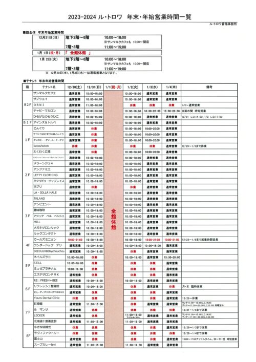 年末年始の営業時間の変更・休業店舗についてご案内申し上げます。