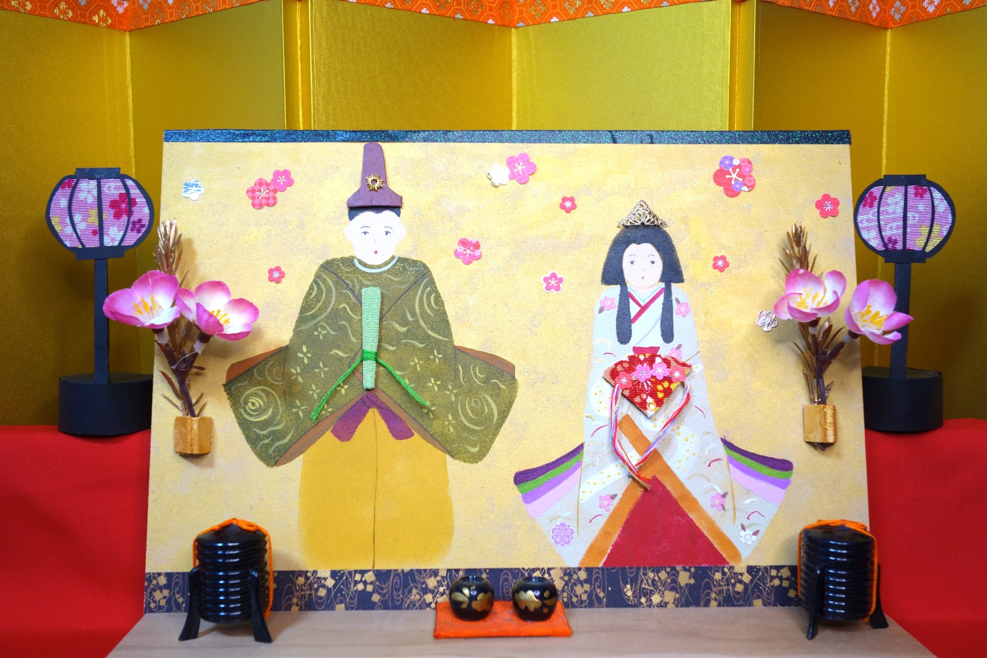 着物などそのほかの模様は、筆を使用。ひと味違った雛祭りが楽しめます。