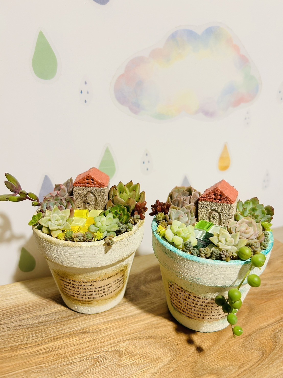今回は7種類の多肉植物の中からお好みの種類を選んで、それに見合った鉢をデザイン。