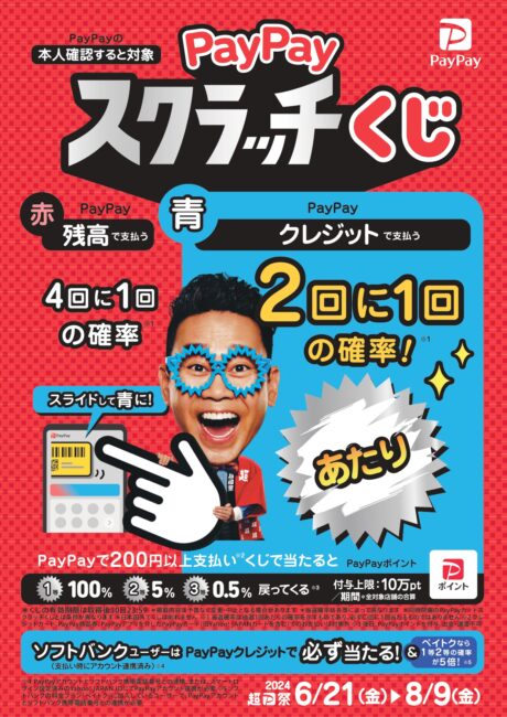 対象店舗で200円以上PayPayでお支払いくじで当たると、