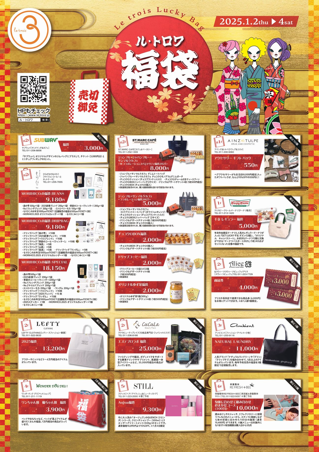 ※店舗により異なる場合がございます。⇒【ル・トロワ店舗年末年始営業時間】
