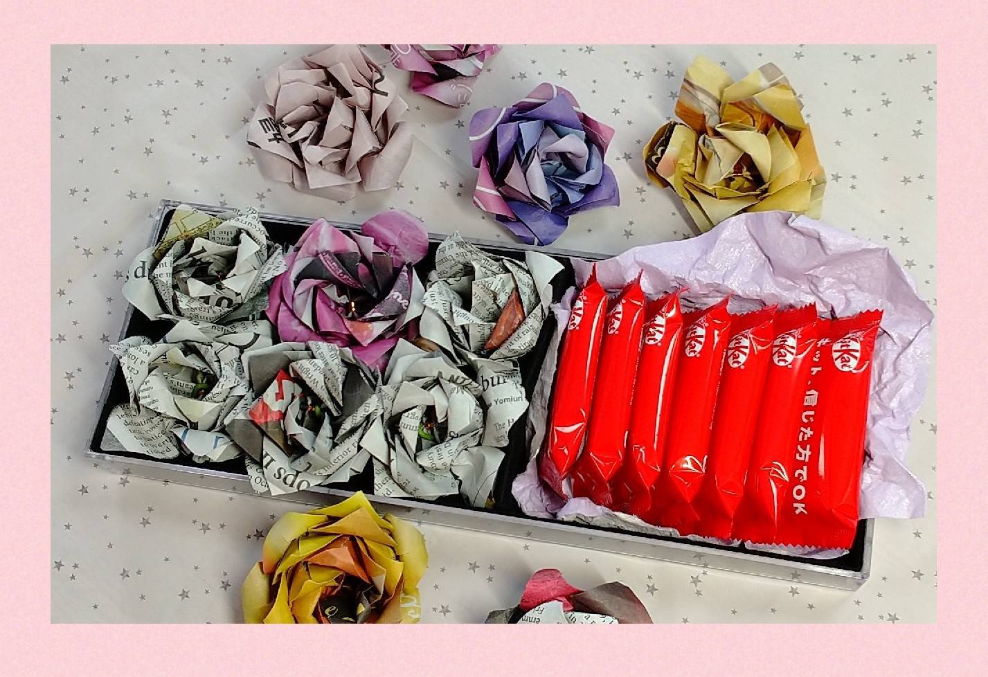 英字新聞を使ってペーパーフラワーを作り、バレンタインの贈り物を素敵に演出します。
