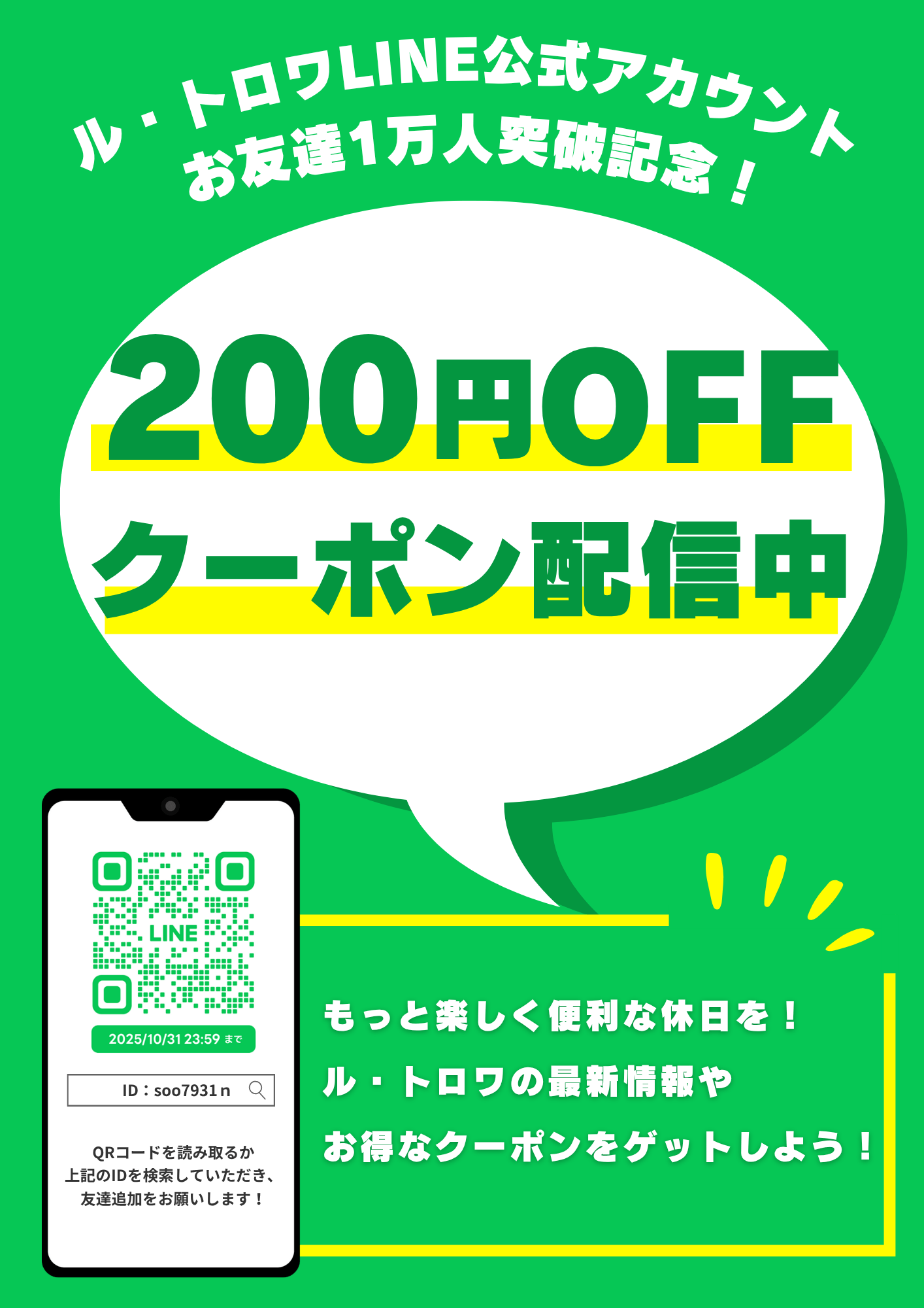 ル・トロワLINE公式アカウントお友達1万人突破を記念して、1,000円(税込)以上のお買物でご利用いただける200円OFFのLINEクーポンを配信中🎉