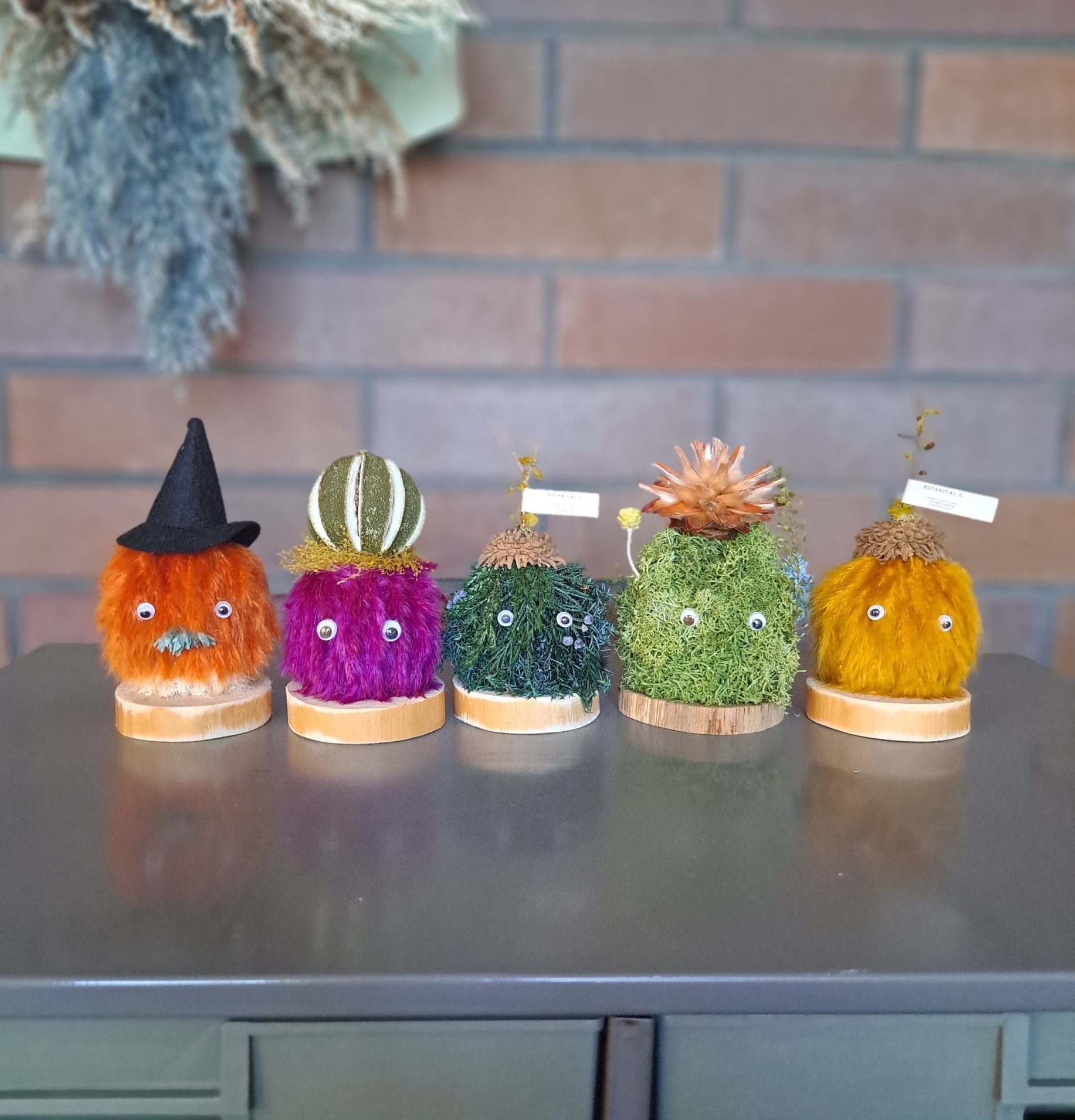 プリザーブドフラワーやドライフラワー、木の実などの植物を使ってオリジナルのモンスターを作ります。