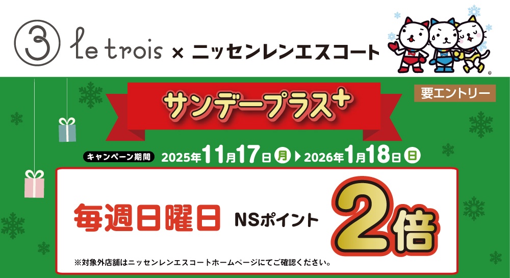 毎週日曜日、ル・トロワ全館にてニッセンレンエスコート発行のカードをご利用いただくと、