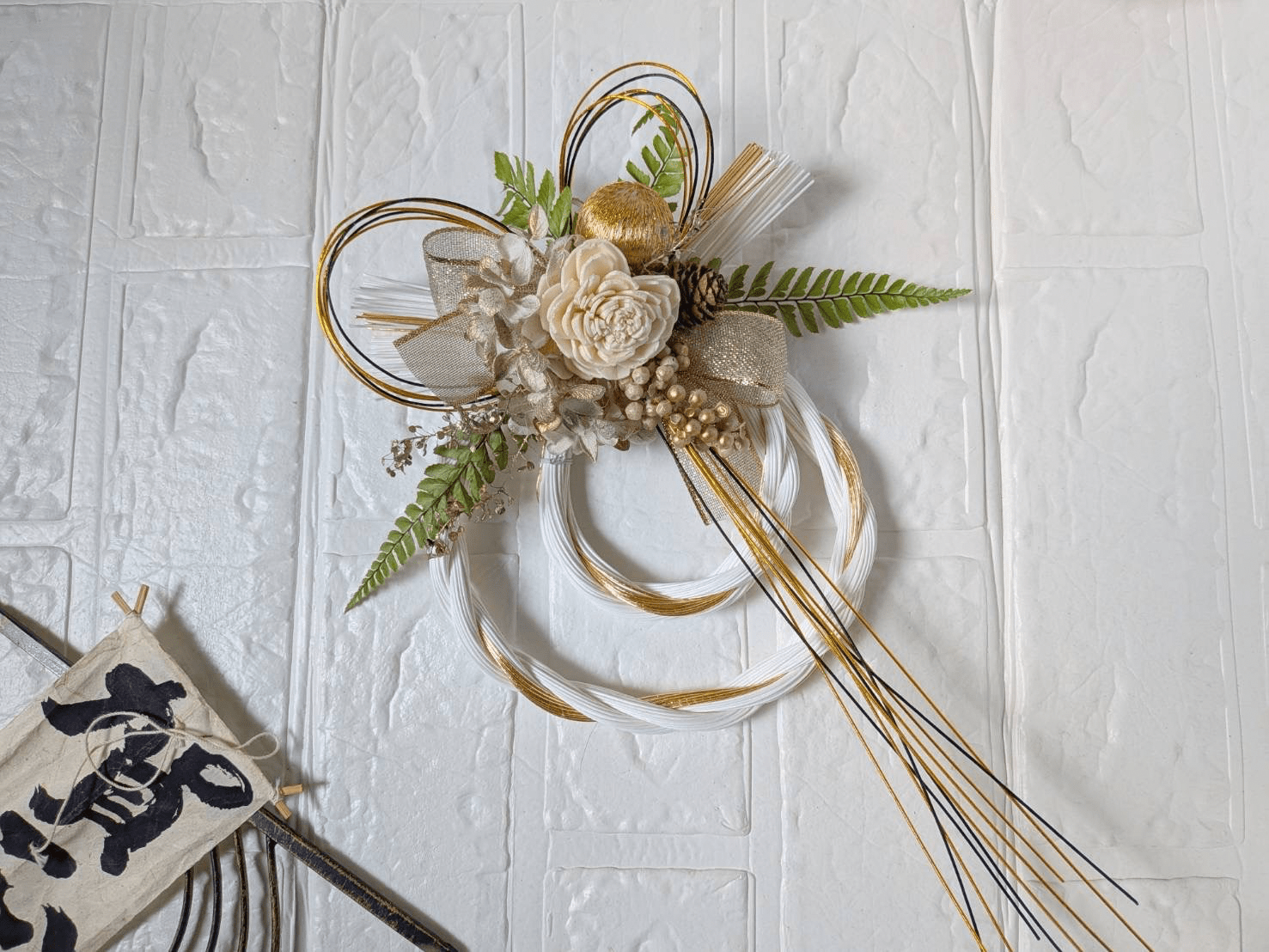 🎍白と金で彩る鮮やかな新年のしめ縄リースを作りましょう🎍