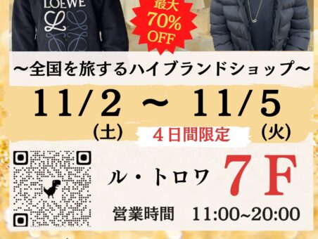 【終了】11.2(土)~11.5(火)🔸【MAX70%OFF 】期間限定ハイブランドのセレクトショップ🔸