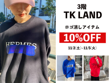 【終了】2024.11.2(土)~11.5(火)🔸大人気ロゴ消しアイテムが10%OFFに!🔸 3F TK LAND