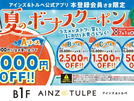【終了】□最大5,000円OFF!夏のボーナスクーポンプレゼント!□ by アインズ&トルペ
