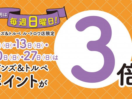 アインズ&トルペ ル・トロワ店限定! 6月は毎週日曜日がアインズ&トルペポイントカードPOINT3倍! 【開催日】:6月6日・13日・20日・27日・・・