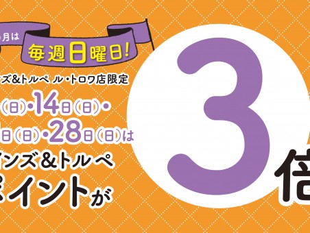 アインズ&トルペ ル・トロワ店限定! 3月は毎週日曜日がアインズ&トルペポイントカードPOINT3倍! 【開催日】:3月7日・14日・21日・28日・・・