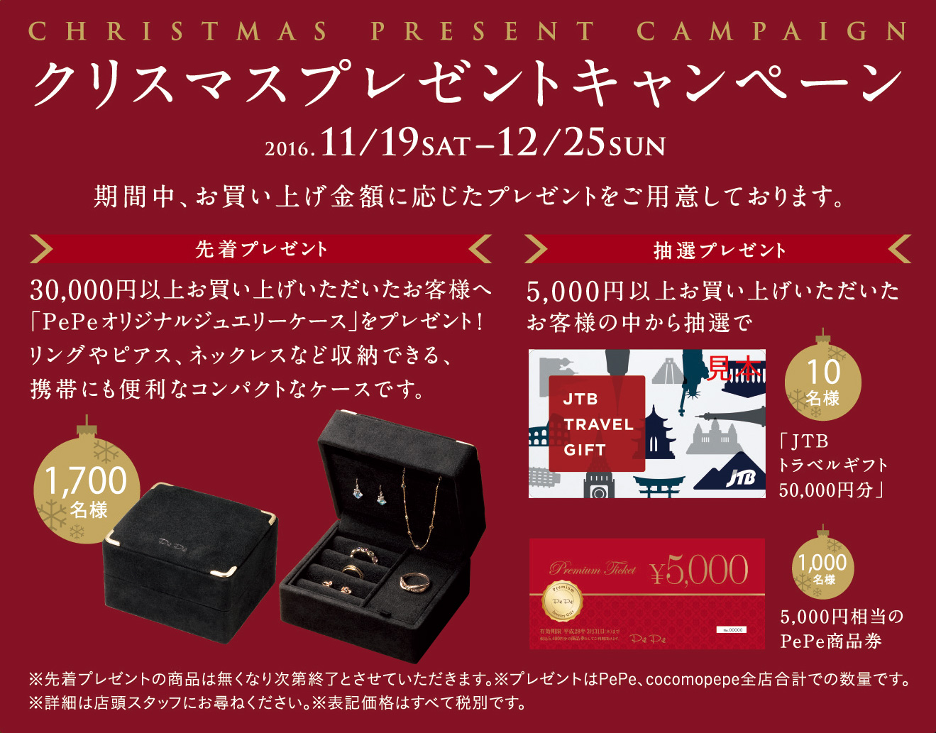 期間中¥30,000(税抜)以上お買い上げのお客様へ、先着で「ベロア風ジュエリーBOX」プレゼント!