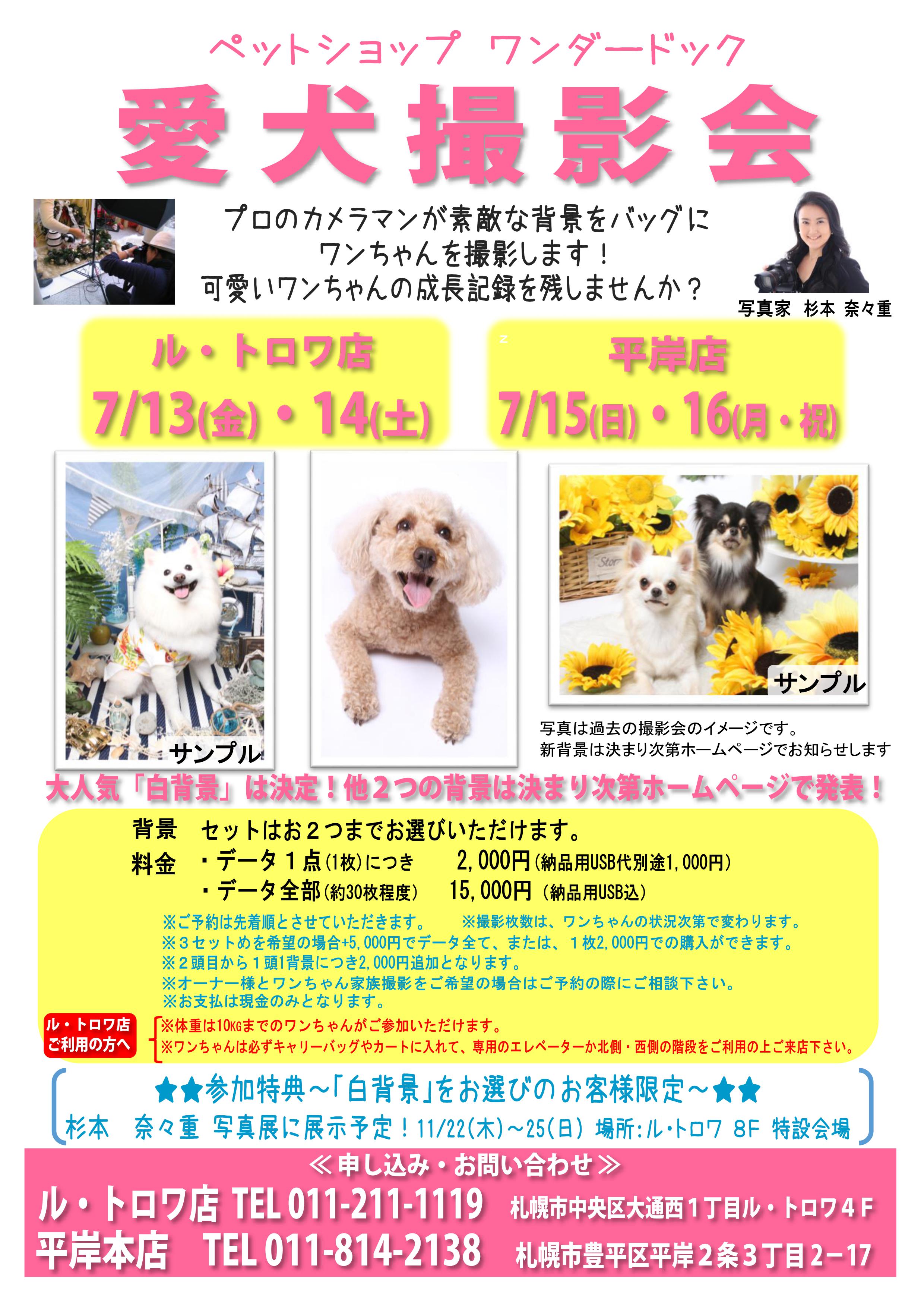 7/13(金)、7/14(土)の2日間に「愛犬撮影会」を開催します。