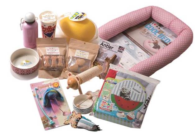 おもちゃやおやつ、ベッドなどが入ったうれしい詰め合わせ。