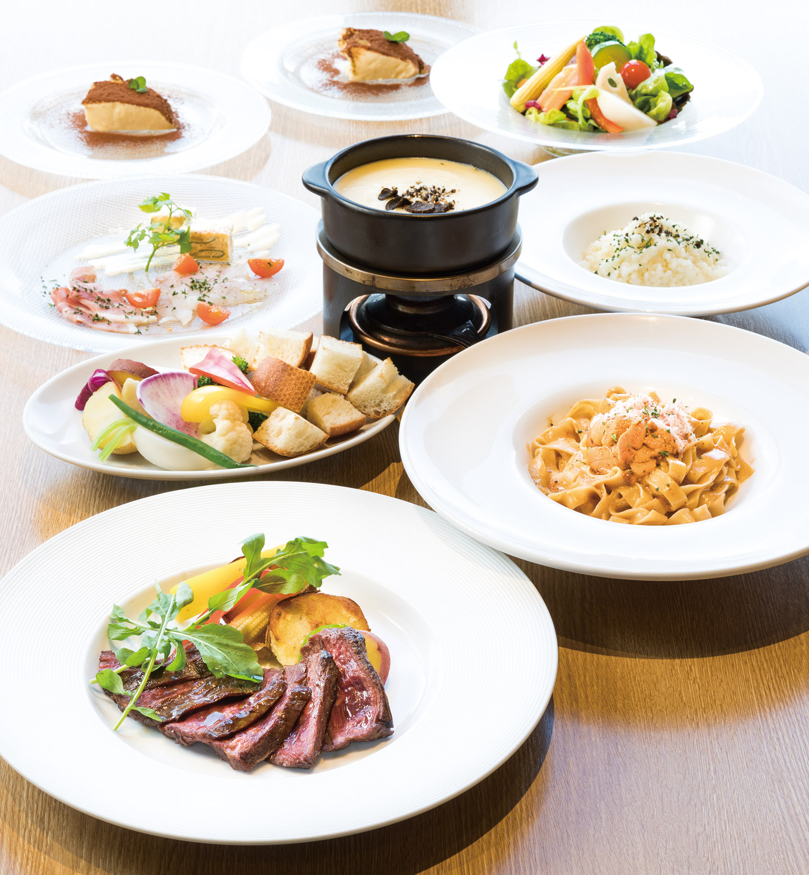 「生ウニとズワイ蟹のパスタ」「黒トリュフ香るチーズフォンデュ」など