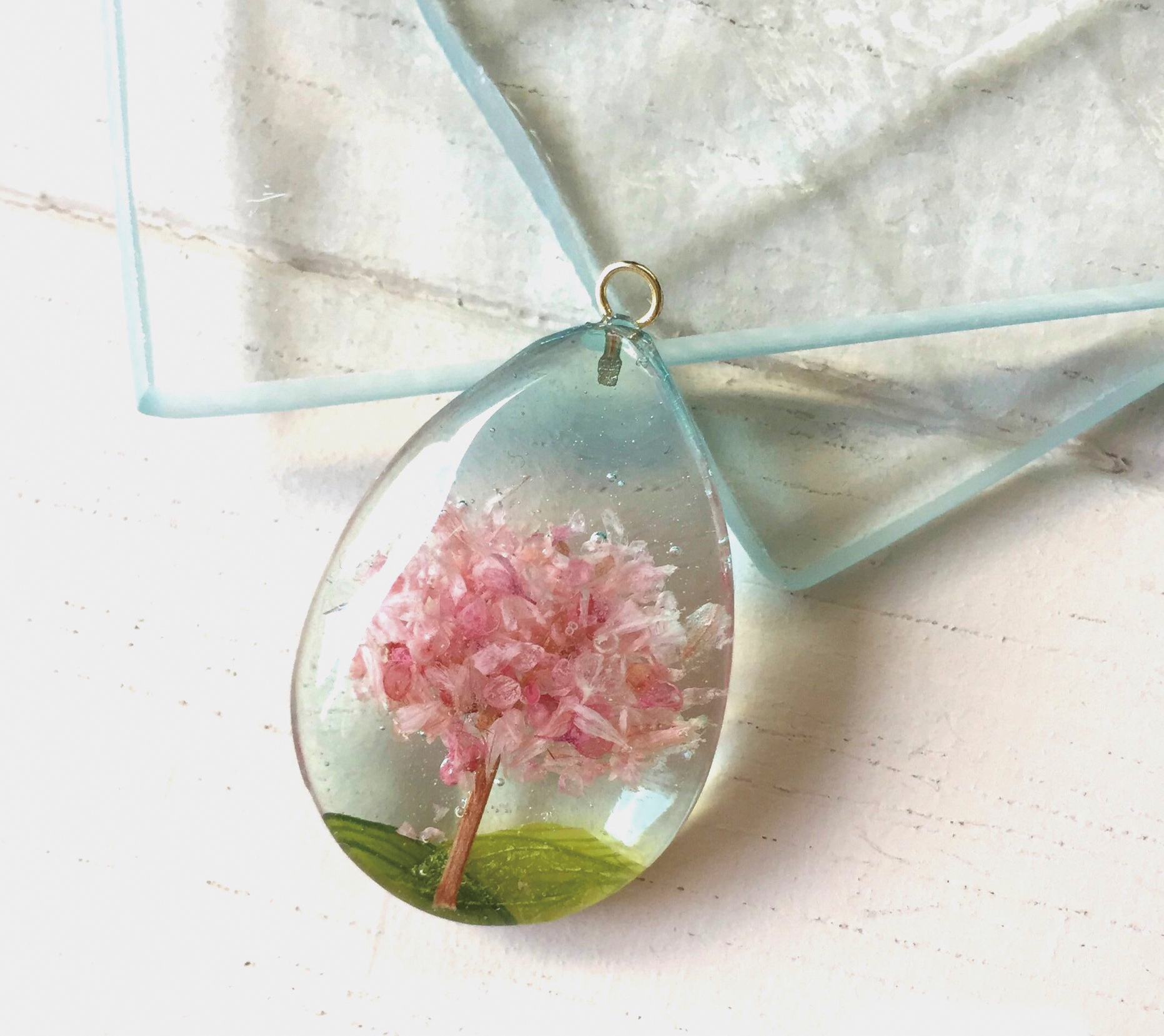 彼女がレジンでつくった桜のモチーフのペンダントは、