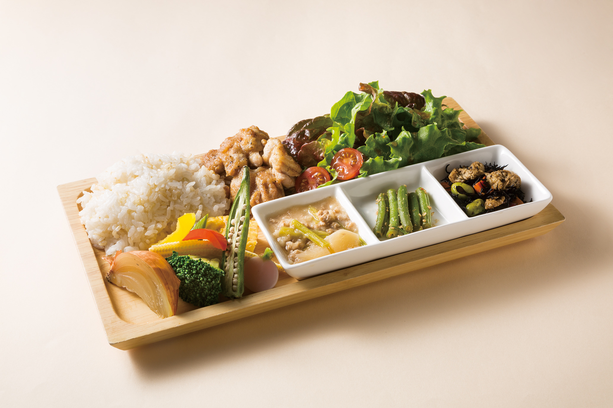 新鮮野菜のサラダにロースト野菜など、野菜がいっぱいのヘルシーメニュー!