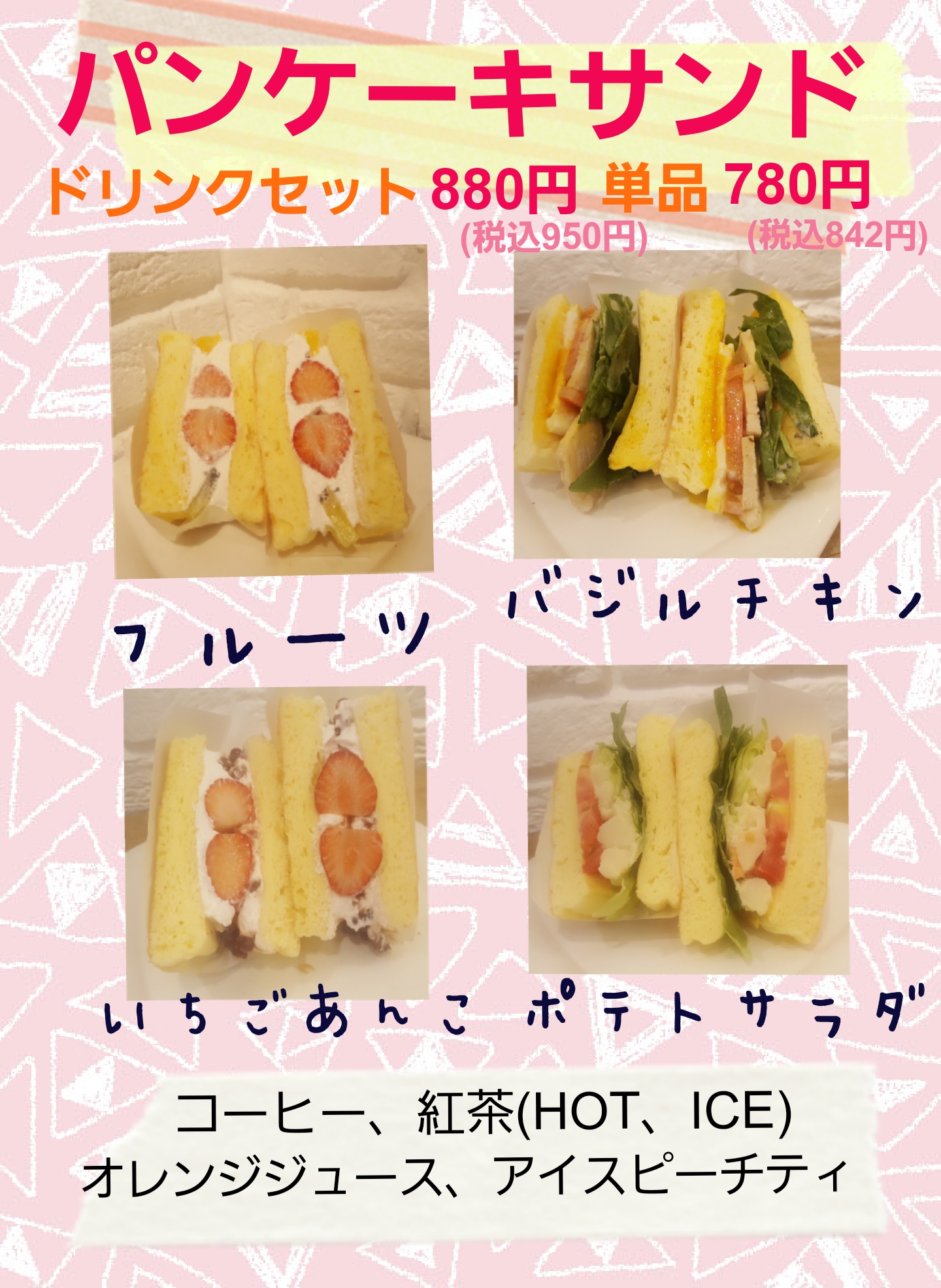 パンケーキサンド(ドリンク付き)・・・950円(税込) 単品842円(税込み)