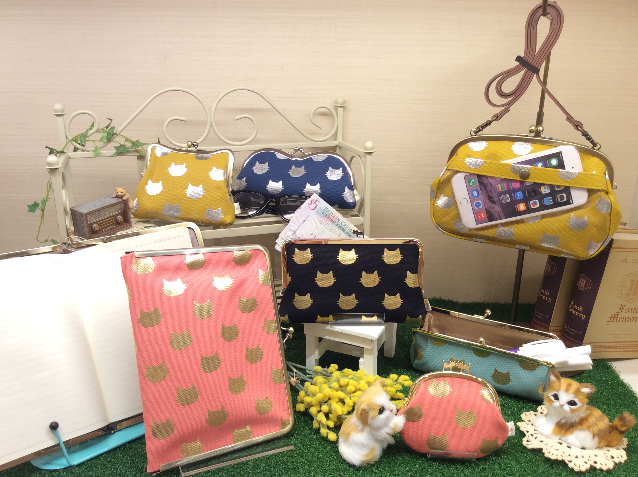 ねこ型ポーチやねこ型のひねりを使ったアイテムはねこ好きにはたまらないアイテム。とってもかわいいねこづくしのシリーズです。