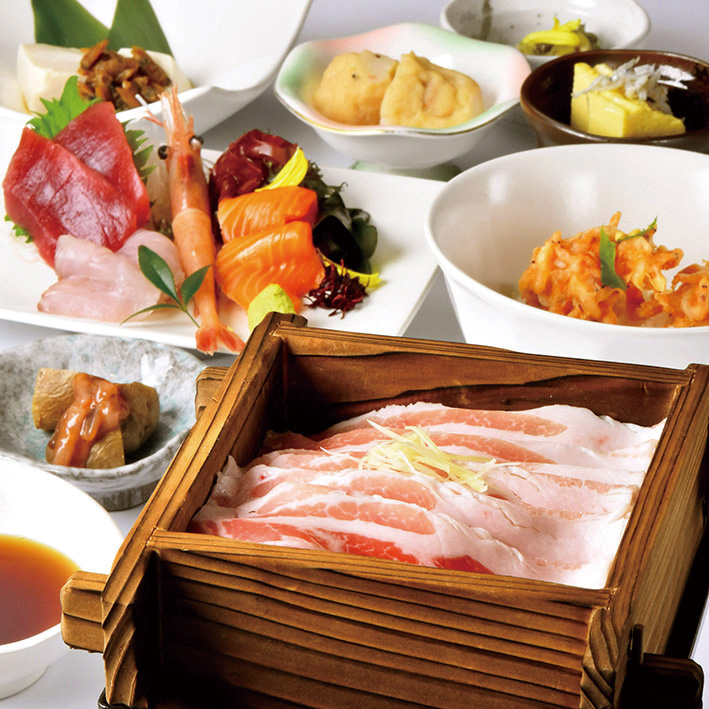 四元豚セイロ蒸し、お造り4点(日替わり)、本日の八寸(お通し5~6種)、