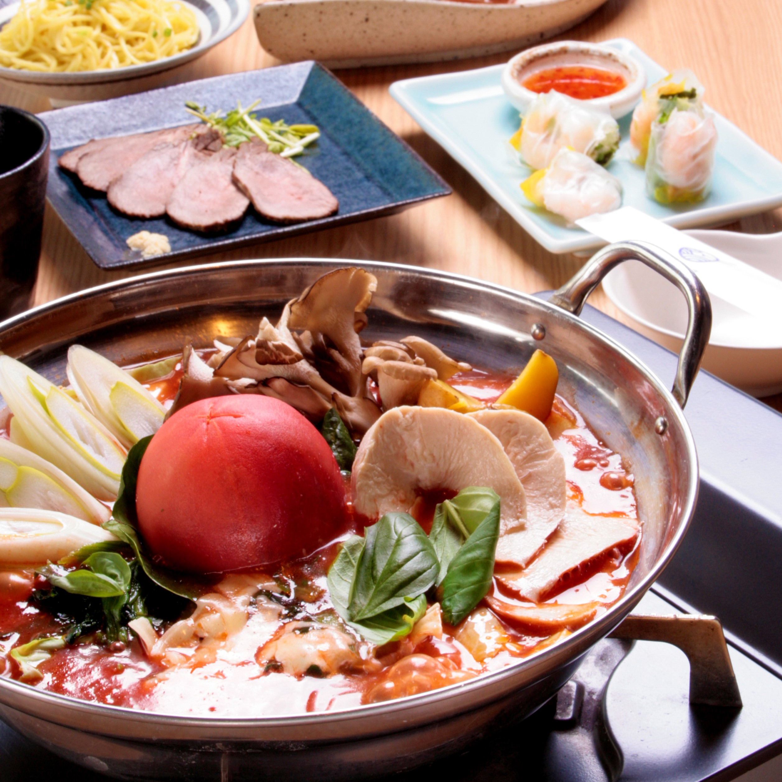 ■とろけるチーズと丸ごとトマト鍋食べ放題 各コースにお一人様プラス500円