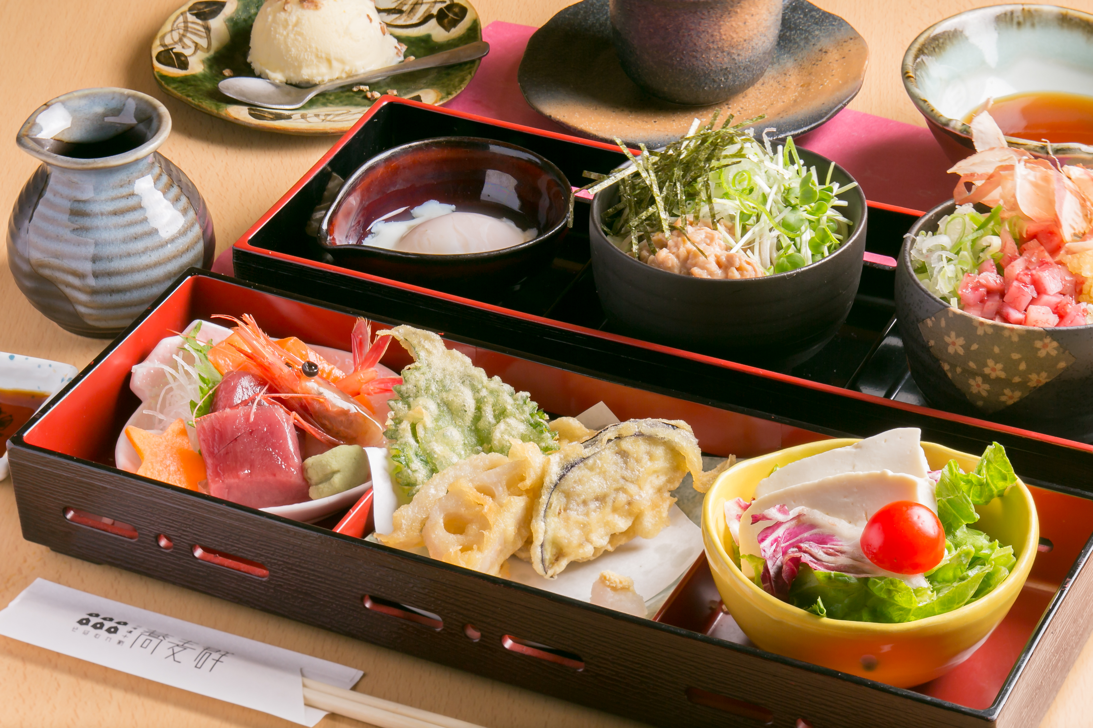 刺身・天ぷら・2種の割子蕎麦・デザート・ソフトドリンク。