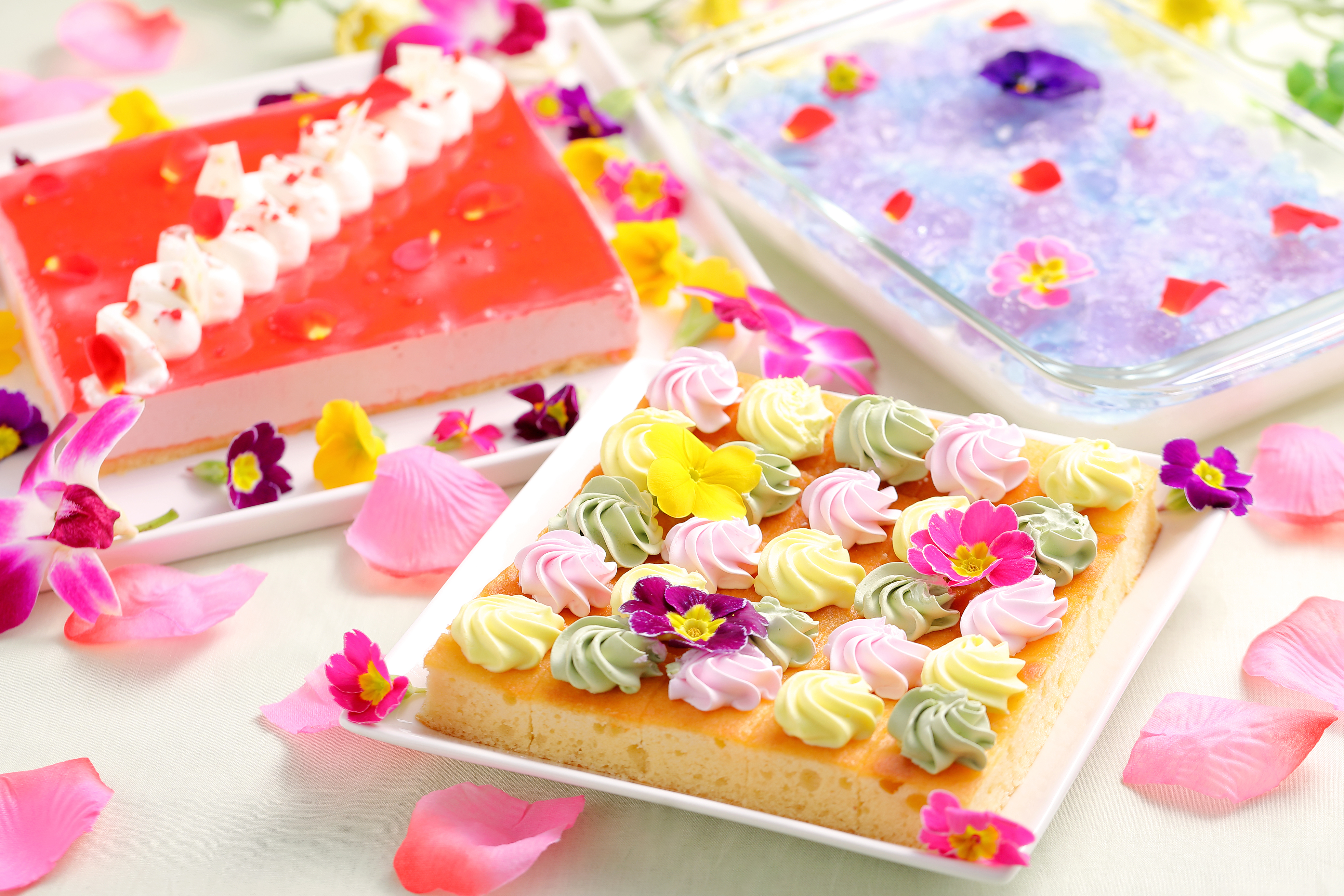 <ビュッフェ>(フラワーパウンド、バタフライピーゼリー、ローズムース)