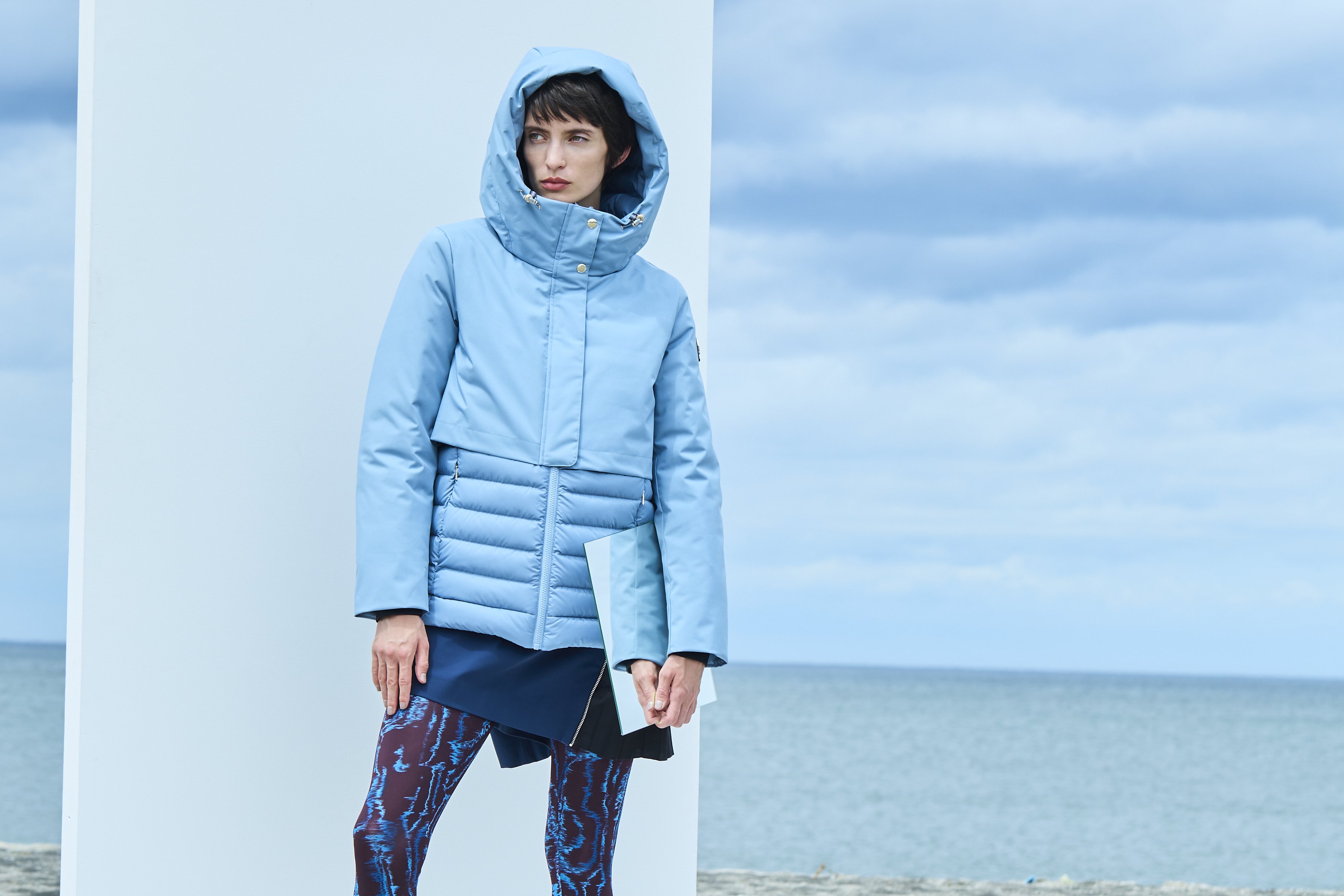 ハイブリットショートダウンは、異素材を使った切り替えがポイント。