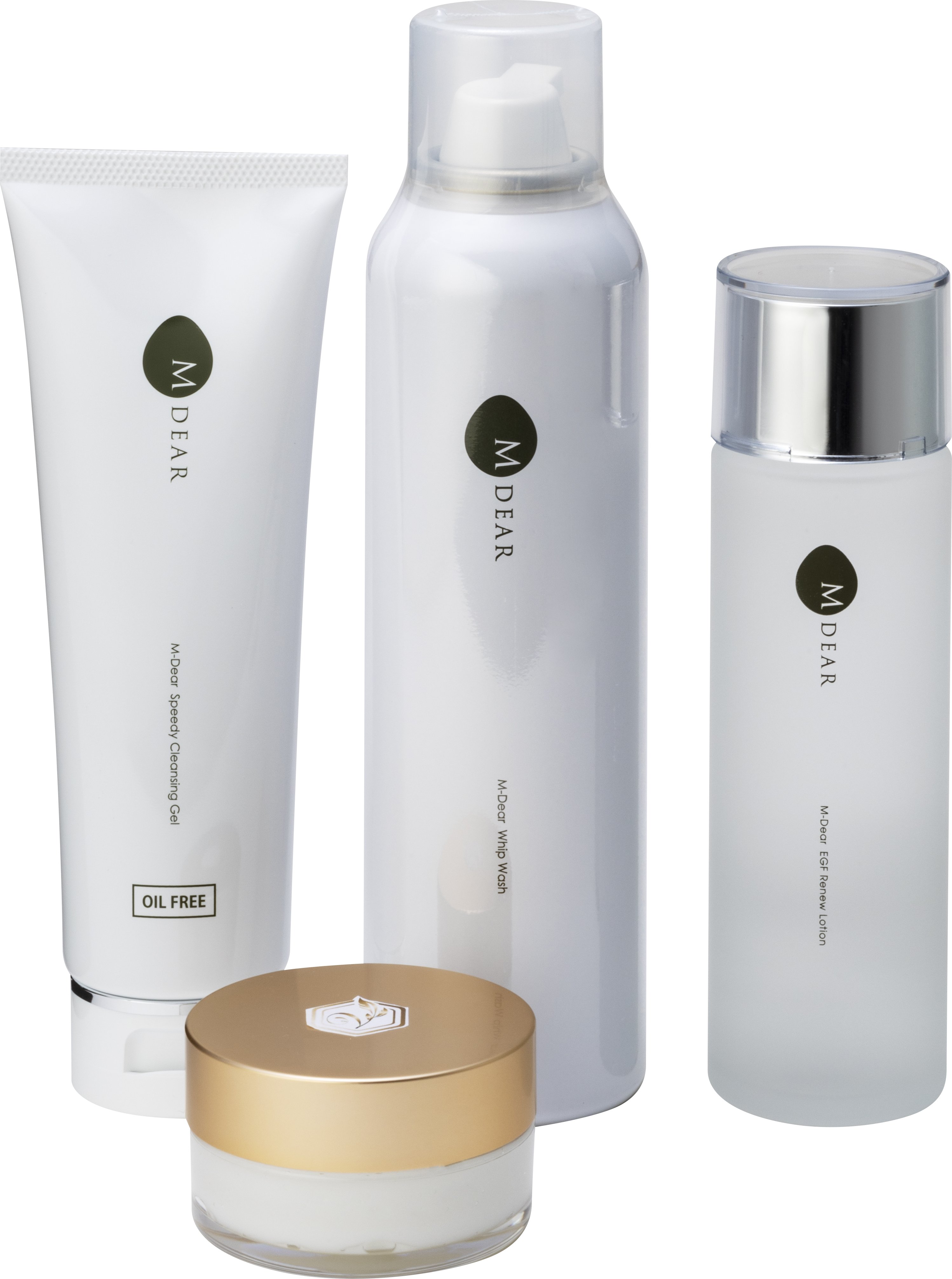 肌の潤いや弾力、輝きを高める医療機関限定のエイジングケアコスメ「エムディア」のクレンジングジェル、ホイップ洗顔、EGFリニューローションのセットと、当院で大人気の高保湿「Vogueクリーム」、肌治療に使える割引チケット(3,000円)が付いた、クリスマス限定スペシャルコフレ。