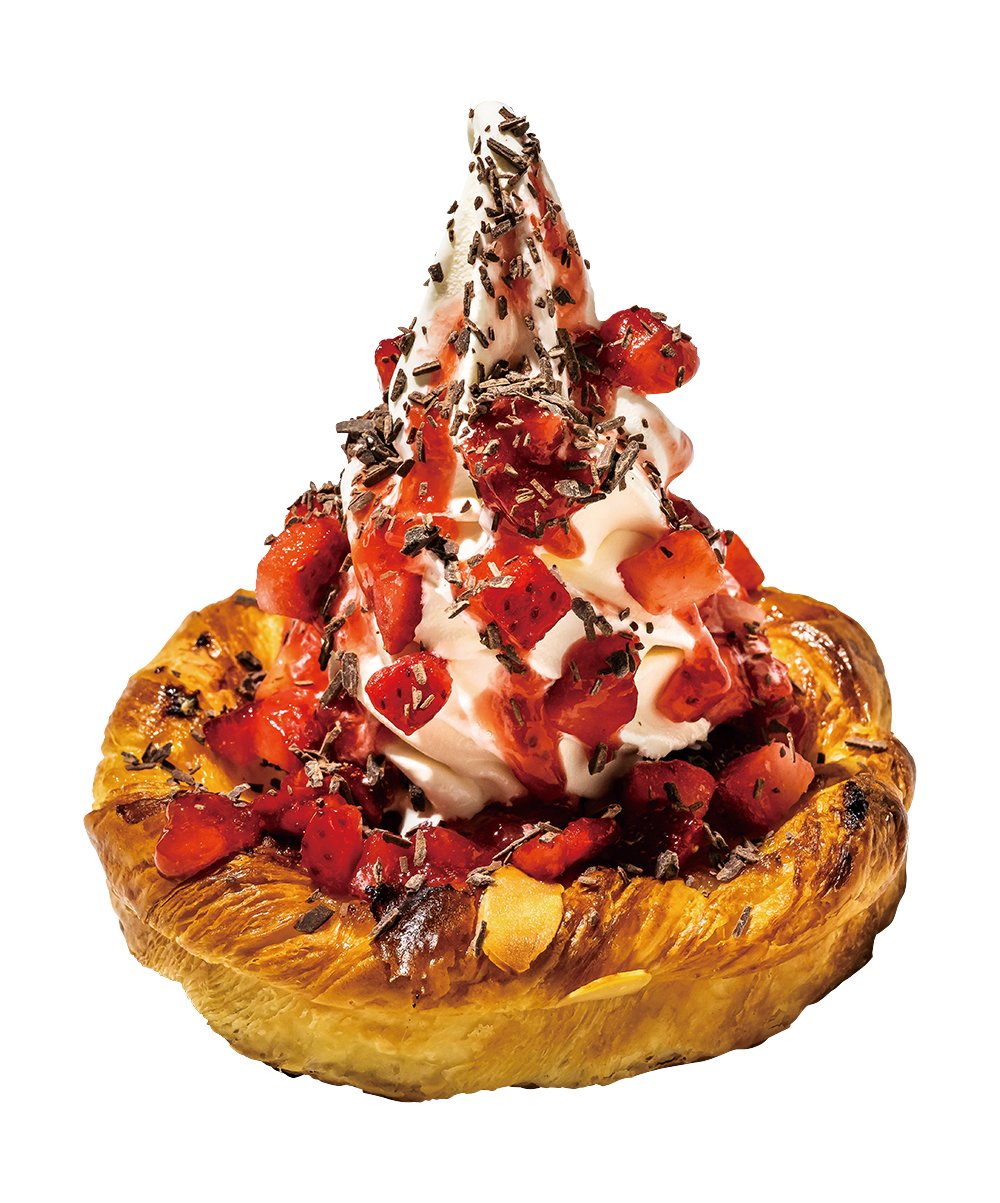 デニッシュに甘酸っぱいストロベリーソースとフローズンのいちごの果肉をトッピング。
