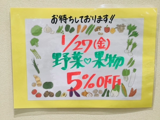 2023.01.02オイシイ【終了】1.27(金)野菜・果物5%OFF! 1Fわくわく広場わくわく広場食のセレクトショップ1F キレイトレンド1Fわくわく広場からのお知らせです。今月のお買い得!1月27日(金) 今年初の野菜&果物5%OFF開催いたします!皆様のご来店お待ちしております。 <お問合せ> わくわく広場 TEL.011-211-5878 ▶わくわく広場公式HP
