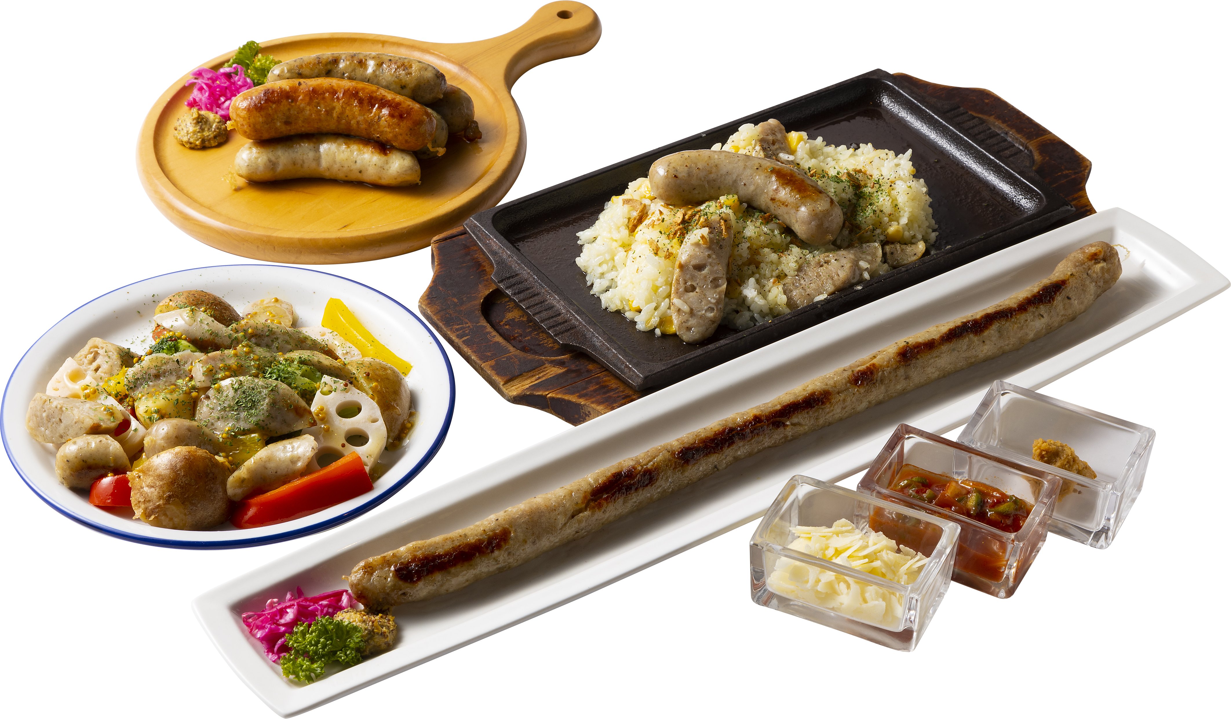 定番の生ソーセージ(プレーン、北海道産行者にんにく、チーズ、チョリソー、ハーブ)やロングソーセージをはじめ、生ソーセージを使ったメニューを存分に味わえる2時間飲み放題付きのコース。