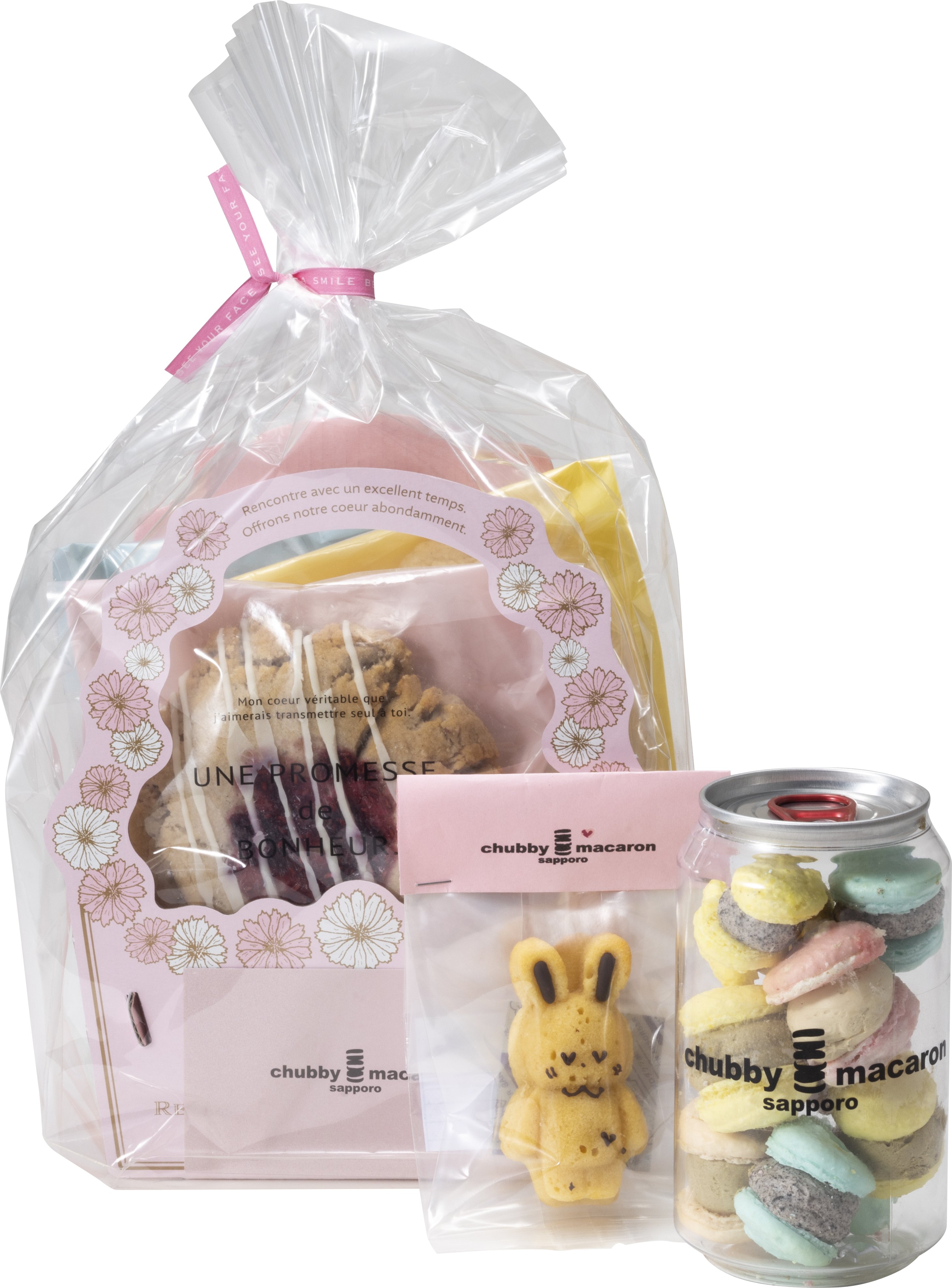 ひと口マカロンが入ったチャビー缶とクッキー(3枚)が入った可愛いギフトボックス。