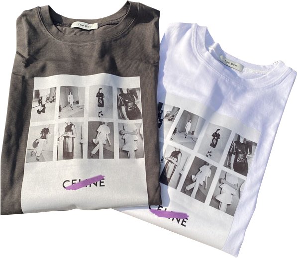 パープルラインのロゴ消しデザインと大人な雰囲気のフォトプリントが個性的な一着。