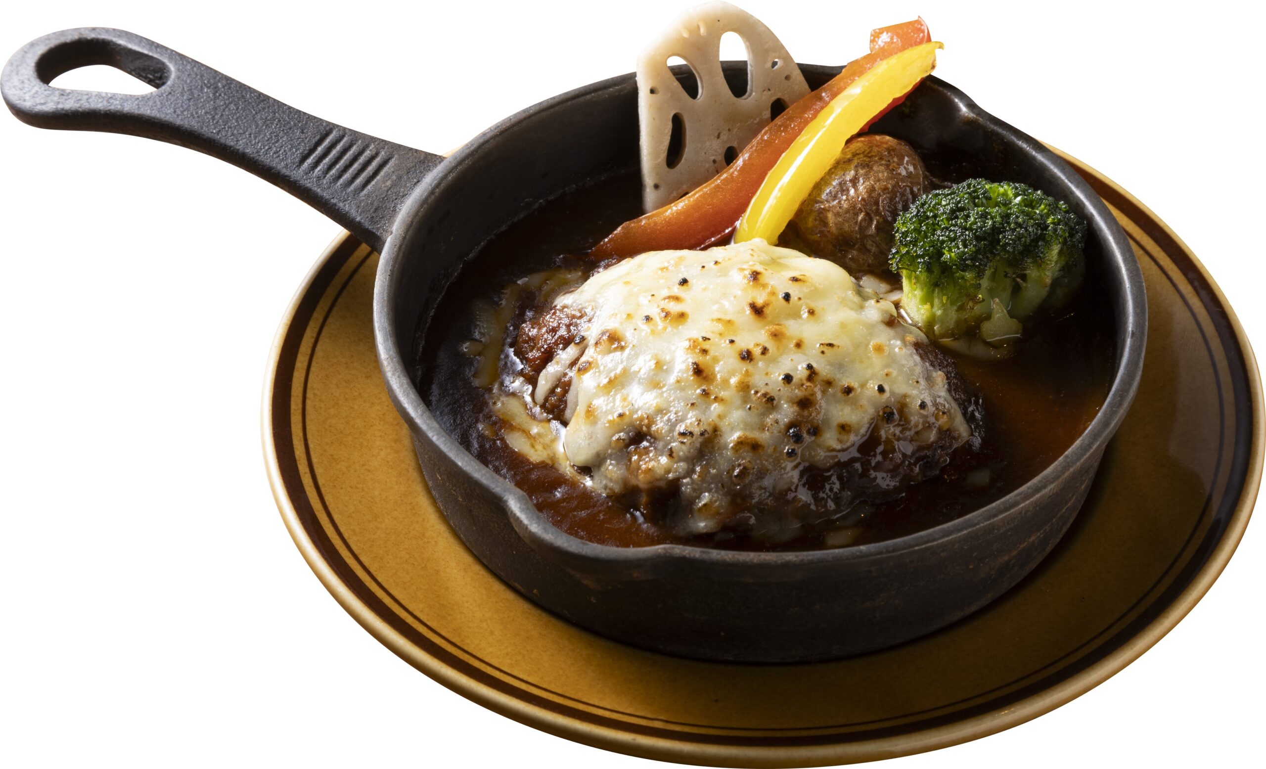 チーズをのせて、熱々の煮込みハンバーグに仕立てました。